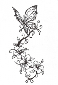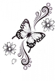 黑色线条文艺小清新唯美蝴蝶和花朵纹身手稿