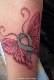 女生手臂上彩绘水彩素描创意文艺蝴蝶冒号纹身图片