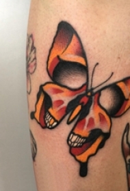 男生手臂上彩绘简单抽象线条骷髅和蝴蝶纹身图片