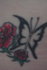红色玫瑰和黑蝴蝶纹身图案