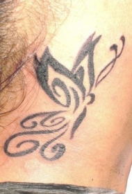 部落蝴蝶黑色颈部纹身图案
