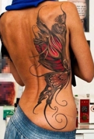 女生背部彩绘素描创意个性霸气蝴蝶大面积纹身图片