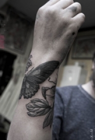 男生手臂上黑色点刺小动物蝴蝶纹身图片