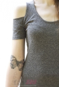 女生手臂上黑灰点刺简单线条小动物蝴蝶纹身图片
