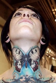 女生颈部彩绘点刺小动物蝴蝶纹身图片