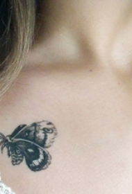 女生锁骨下黑色线条素描唯美蝴蝶纹身图片