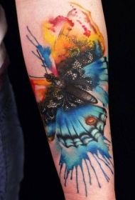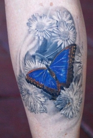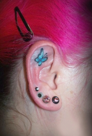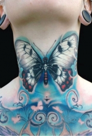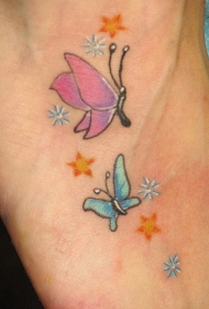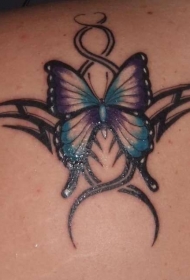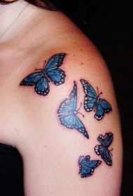 蓝色和紫色漂亮的蝴蝶纹身图案