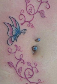 浅粉色藤蔓和蓝蝴蝶纹身图案
