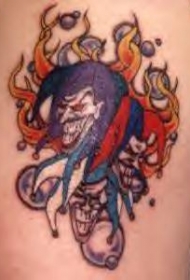 肩部彩色小丑在火焰中纹身图案