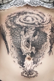 腹部神秘的狐狸太阳能系统纹身图案