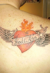 肩部彩色翅膀与爱心纹身图案