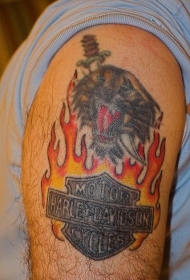 大臂哈雷戴维森标志和火焰纹身图案