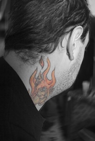 男性颈部彩绘火焰个性纹身图案