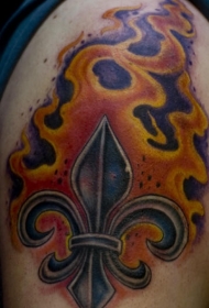 肩部燃烧的鸢尾符号纹身图案