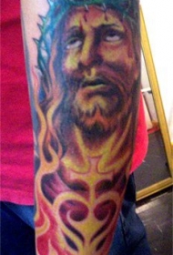 手臂彩色耶稣在火焰中纹身图案