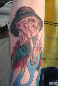 手臂彩色弗莱迪·克鲁格纹身图案
