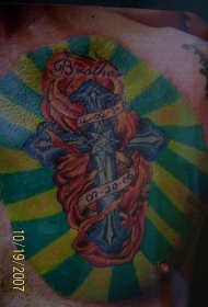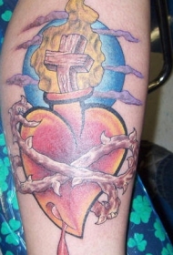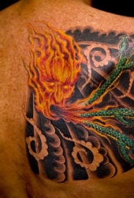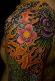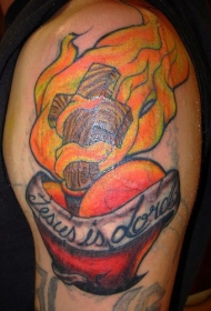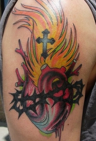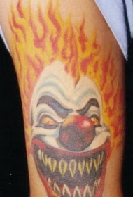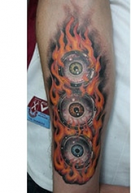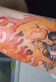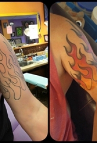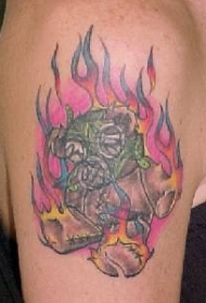 卡通风格彩色僵尸手和火焰手臂纹身图案