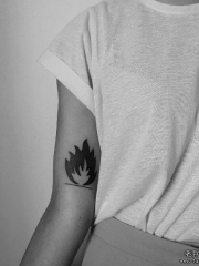 女生大臂黑色火焰纹身图案