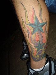 腿部彩色五角星纹身图片
