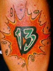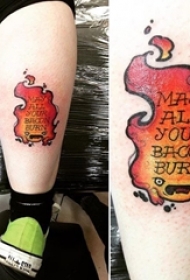 腿部彩色火焰数字纹身图案