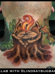 颈部树木火焰个性纹身图案