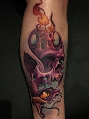 小腿new school骷髅蛇火焰纹身图案