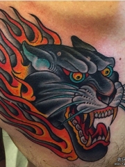 欧美old school黑豹火焰纹身图案