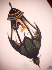 欧美school灯火焰纹身图案手稿