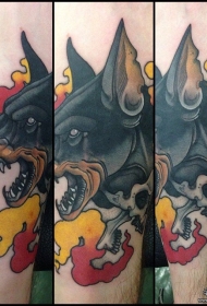小腿school狗头火焰纹身图案