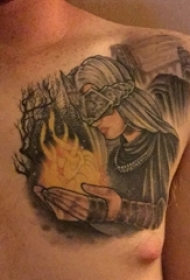 男性前胸火焰纹身
