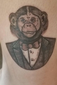 男生小腿上黑色点刺几何线条小动物猴子刺青图案图片