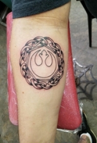男生手臂上黑色几何圆形简单线条创意刺青图案图片