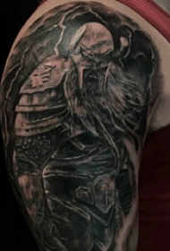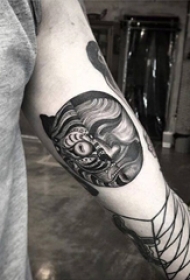 男生手臂上黑色点刺抽象线条人物武士刺青图案图片