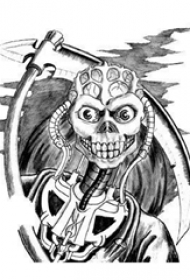 男性喜爱的黑灰色镰刀死神刺青手稿图片