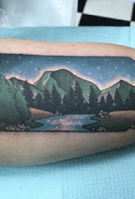 男生手臂上彩绘水彩唯美夜景风景刺青图案图片