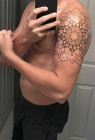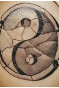 男生手臂上黑灰点刺几何线条太极八卦刺青图案图片