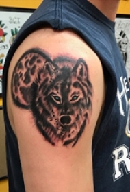 男生手臂上黑色点刺小动物狼刺青图案图片