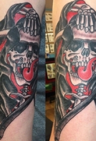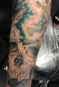 男生手臂上彩绘水彩素描创意恐怖骷髅刺青图案图片