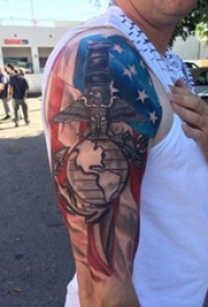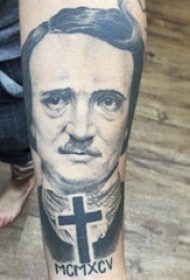男生手臂上黑灰素描创意男生人物刺青图案图片