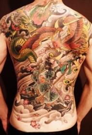 男生喜爱的霸气动物武士和龙刺青图案图片