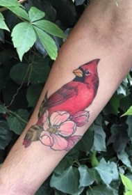 女生手臂上彩绘水彩素描创意小鸟和花朵刺青图案图片