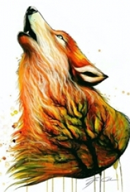 多款彩绘水彩素描霸气创意狼刺青手稿图片