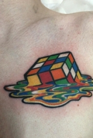 男生胸口上彩绘水彩素描抽象魔方刺青图案图片