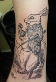 男生手臂上黑灰素描创意文艺童话兔先生刺青图案图片