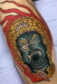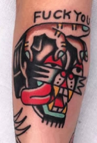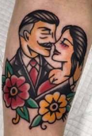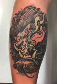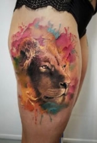 人物肖像刺青 女生大腿上彩绘的人物肖像刺青图案图片