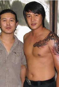 陆毅刺青图 明星肩部黑灰色的龙刺青图案图片