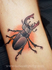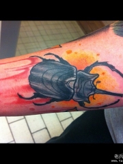 小臂甲虫欧美泼墨纹身图案