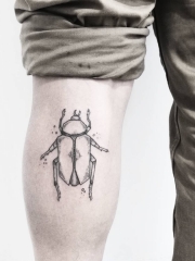 小腿欧美甲虫线条纹身图案
