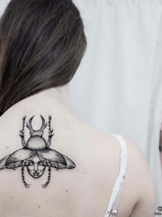 背部欧美甲虫人像点刺纹身图案