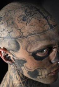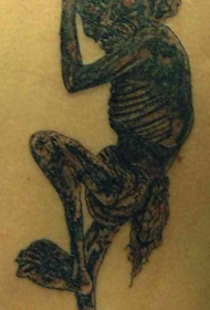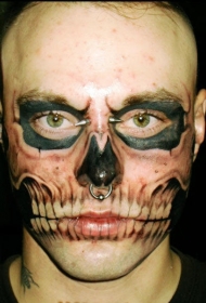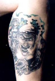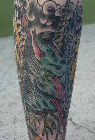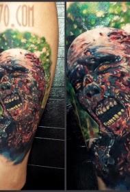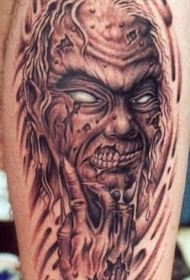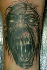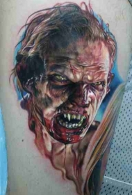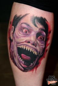 小腿惊人的彩色僵尸怪物脸纹身图案